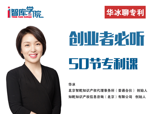 近期,i智库学院与华冰老师联合为创业者量身打造了一套课程——《创业者必听的50节专利课》,该套课程是华冰老师从业十余年的工作结晶,该课程不讲法理法条,只讲不同的专利事件对于企业的影响。包括专利对创业者的重要性、专利的风险、成本、收益以及企业具体应该怎么做,全课一共有50多节,每节课5-15分钟不等,通俗、易懂、实用。欢迎大家购买学习!