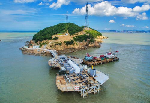 近日,装机容量3.4兆瓦的大型海洋潮流能发电机组两个涡轮水轮机模块在浙江省舟山市岱山县秀山岛南部海域成功运行发电。此次顺利投运发电的大型海洋潮流能发电机组系统群由我国自主研发生产,拥有自主知识产权,预计年发电量可达600万千瓦时。(新华社 供图)