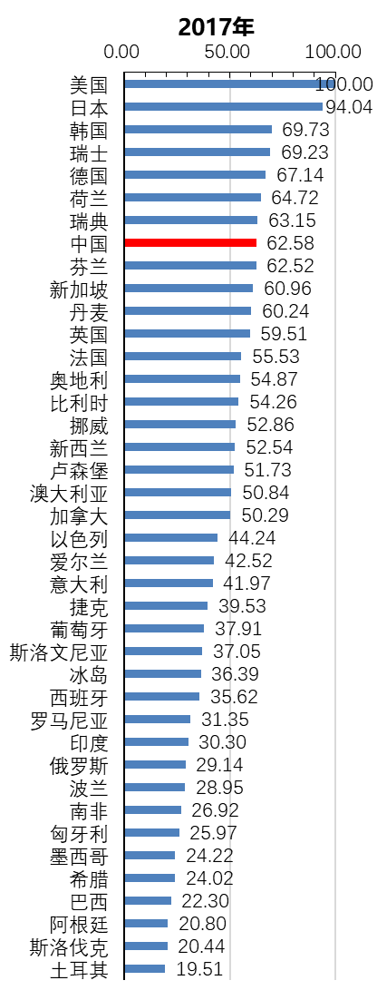 [1]考虑到国际数据相对于国内数据滞后的客观情况,年度知识产权发展状况国际比较指标体系的时间窗口选为2017年。