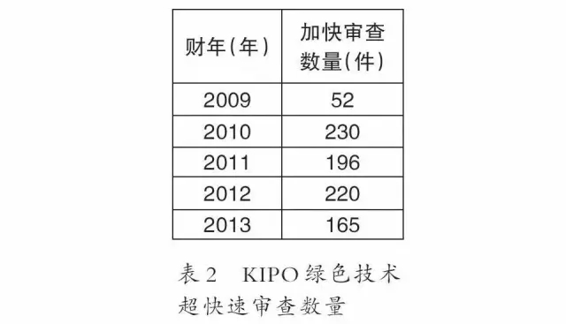 自绿色技术超快速审查实施至2013年底,KIPO每年加快审查数量见表2。