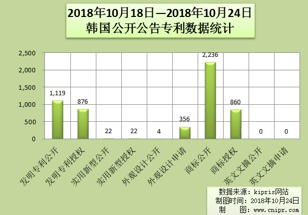 2018年10月18日—2018年10月24日韩国公开公告专利数据统计